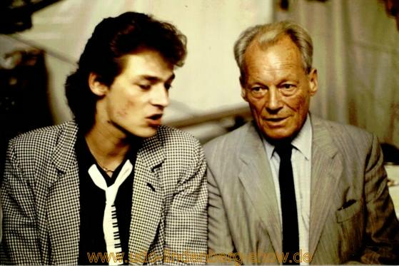 Pressefoto mit Willy Brandt, entstanden 1987 beim Event „Rock gegen Atom”.